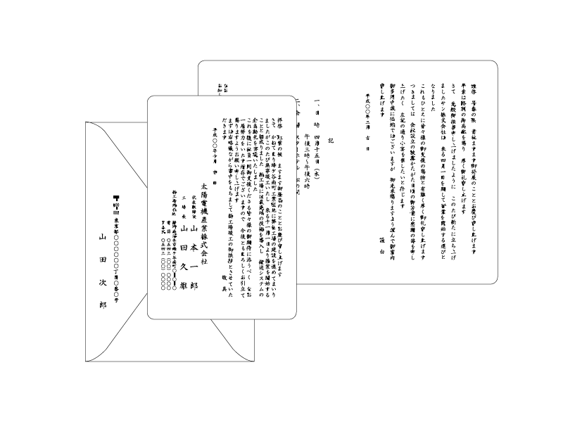 挨拶状は読みやすさを考慮し、1行単位の字切りまでこだわり、封筒は入れ易さ、出し易さまでを考えて制作しております。